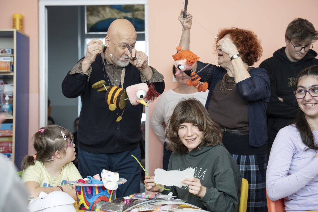Към преживяването се присъединиха и артистите от Театър „Сириус“, които донесоха кукли от свои спектакли. Децата се запознаха с пчеличките от „Пчеличката Мързеливка“ и жабките от „Грозното патенце“. Те се превърнаха в естествен мост между сцената и детската игра.