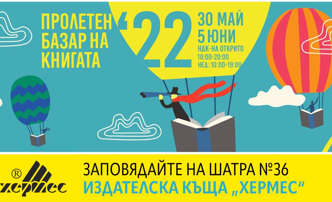 „Заповядайте от 30 май до 5 юни на шатра №36 – „Хермес“! А за всички, които нямат възможност да посетят базара, до 5 юни отстъпката от 20% ще важи в книжарница „Хермес“ – София (бул. „Александър Стамболийски“ №27А) и онлайн на www.hermesbooks.bg„, обясниха от издателството.