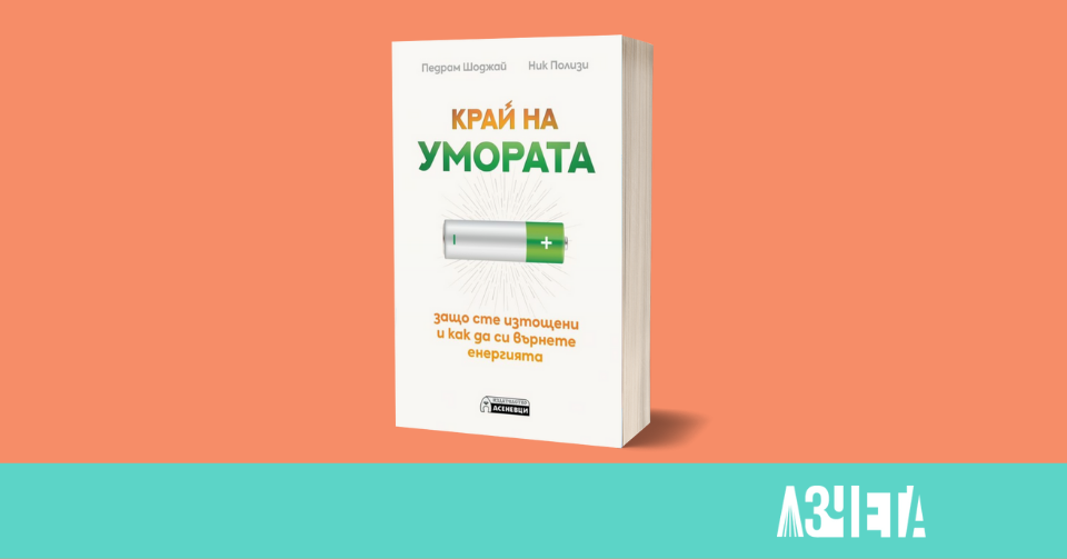 “Край на умората – защо сте изтощени и как да си върнете енергията” (изд. “Асеневци”, преводач: Валерия Сарелска) от Педрам Шоджай и Ник Полизи е книга, която грабна вниманието ми сред много други на масата с нови издания в една от от столичните книжарници. Тоест, сред море от възможности намерих точно онова четиво, от което се нуждая отдавна. Заглавието ме спечели, достъпният език ме плени. И съм повече от щастлива, че това ми се случи. Тази книга е истински лъч надежда.