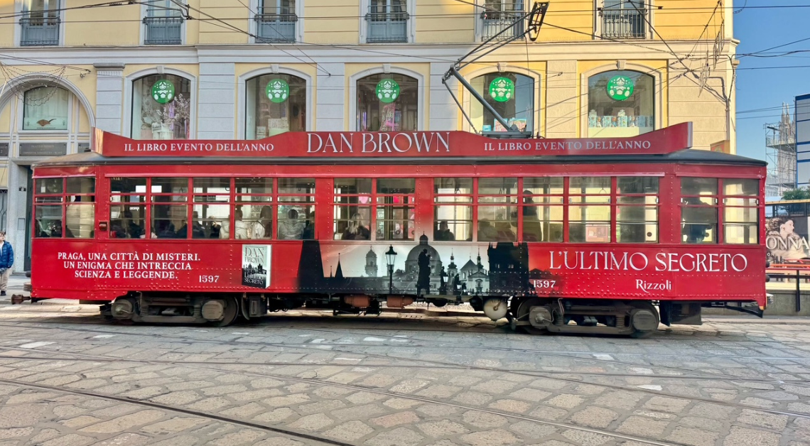 Милано не е само място за минаващ трамвай. Градът е част от официалния европейски тур на автора, с презентации и събития за италианското издание на L’ultimo segreto от Rizzoli. Трамваят е символична визуализация на кампанията и препраща към връзката на Лангдън с Италия и ренесансовото наследство.