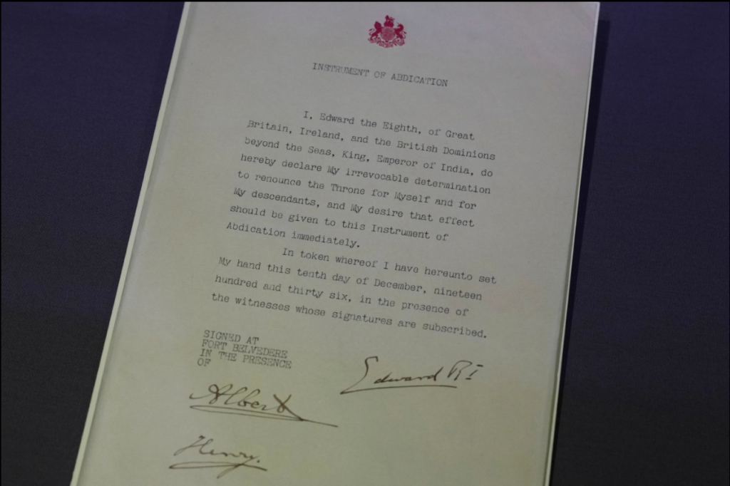 Силни човешки истории изпъкват и в петицията на 71-годишния тъкач Даниел Ръш от 1851 г., който моли властите да не го разделят със съпругата му, изпращайки ги в различни работни домове. До нея е изложен и Актът за абдикация на крал Едуард VIII от 1936 г. В този докумен той се отказва от трона, за да се ожени за „жената, която обичам“ – Уолис Симпсън.