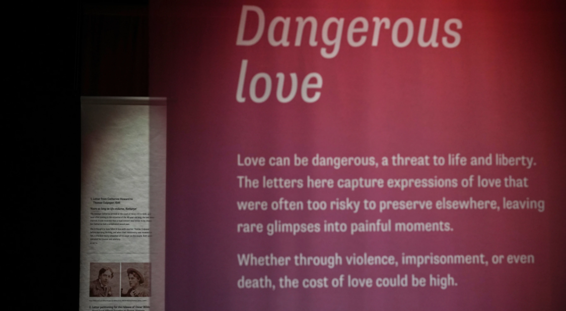 Сред експонатите са обяви от началото на XX век, търсещи еднополова любов, писма от любими до войници на фронта, както и средновековна песен за разбито сърце. Особено ценен документ е писмото на Робърт Дъдли, граф на Лестър, до кралица Елизабет I, написано дни преди смъртта му през 1588 г. и открито до леглото на кралицата след нейната кончина почти 15 години по-късно. В него Дъдли се подписва като „вашият беден стар слуга“, а върху плика стои надписът „последното му писмо“.