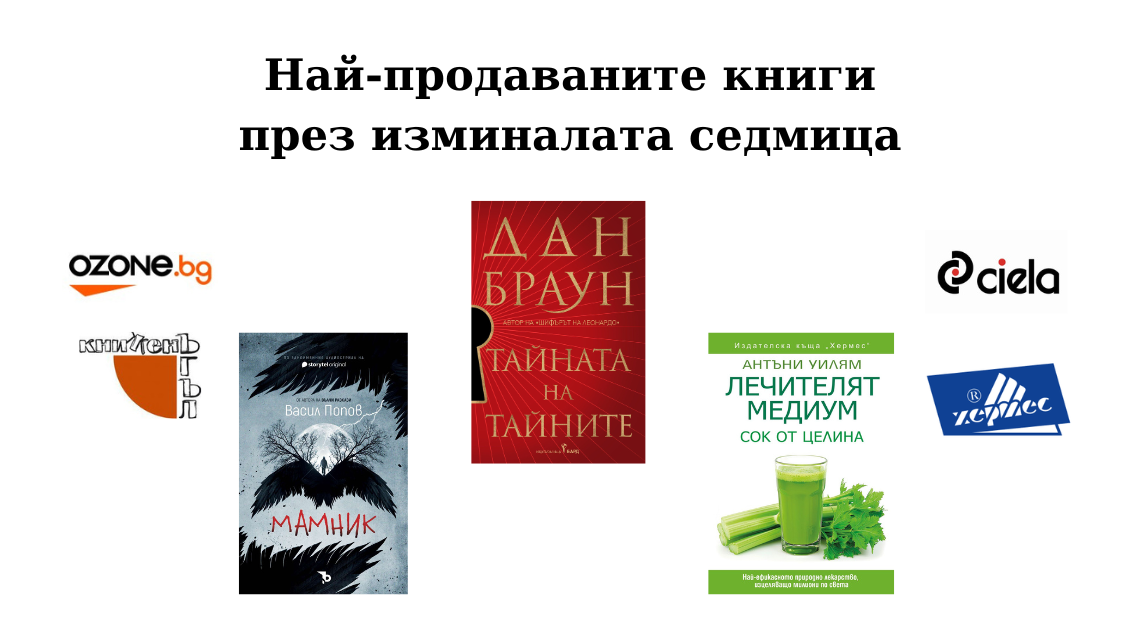 Класация на книжарници „Ozone“ – 16 – 22 февруари 2026