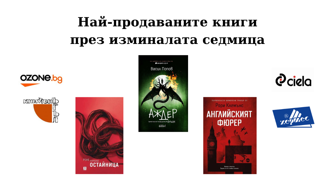 Класация на книжарници „Ozone“ – 30 март – 5 април 2026