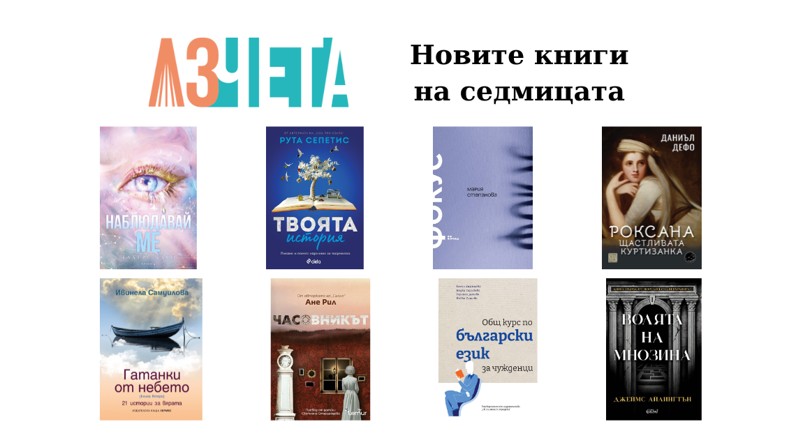Ако искате да включим и ваша книга в седмичния ни подбор на нови заглавия, пишете ни на [email protected] поне няколко дни преди излизането ѝ на пазара, следвайки ползвания в този материал формат.