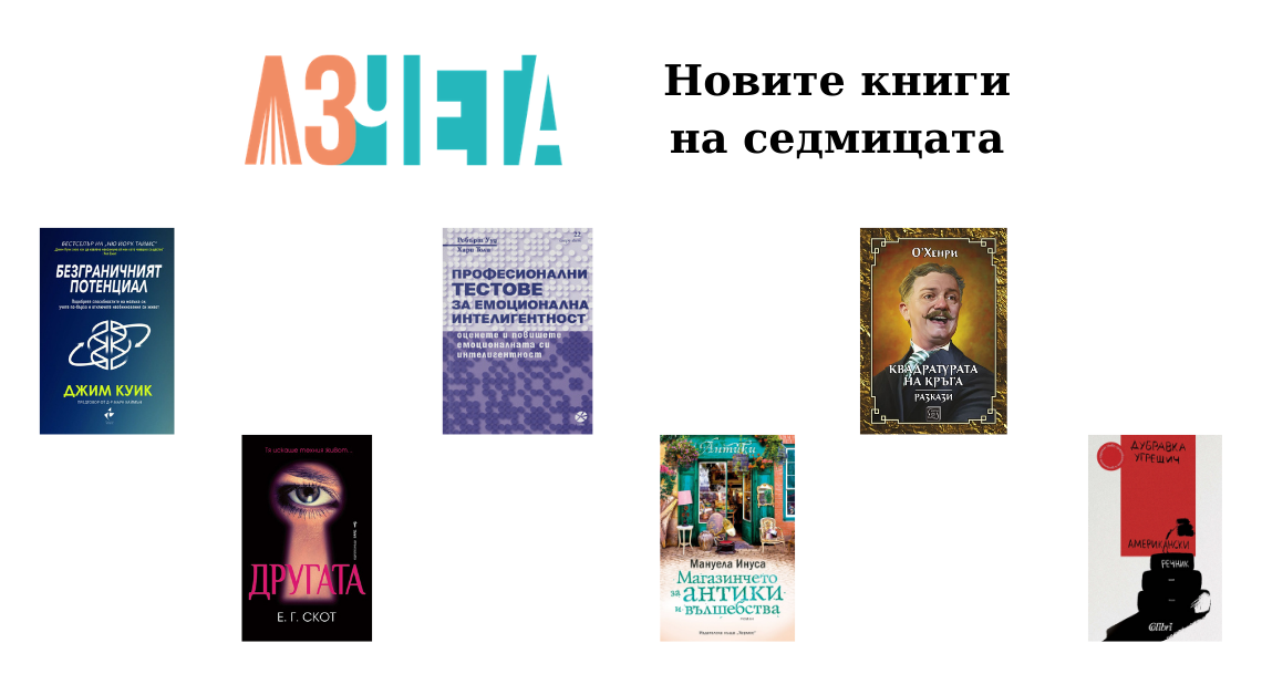 Ако искате да включим и ваша книга в седмичния ни подбор на нови заглавия, пишете ни на [email protected] поне няколко дни преди излизането ѝ на пазара, следвайки ползвания в този материал формат.