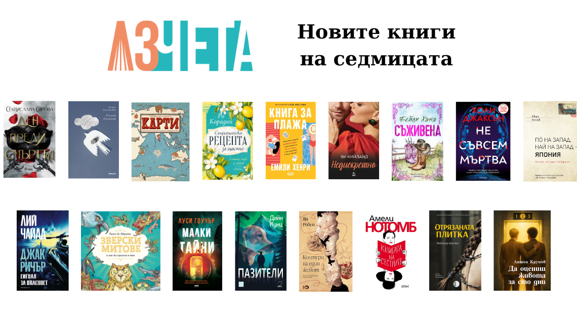 Веднъж в седмицата „Аз чета“ ви представя новите книги на пазара, подбрани от самите издателства. Следете нашия специален формат, но продължавайте да четете и ревютата, които правим за вас. Защото искаме да обичате книгите още повече!