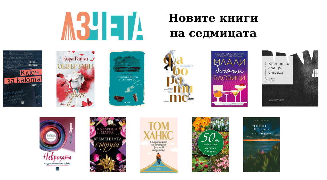 Ако искате да включим и ваша книга в седмичния ни подбор на нови заглавия, пишете ни на [email protected] поне няколко дни преди излизането ѝ на пазара, следвайки ползвания в този материал формат.