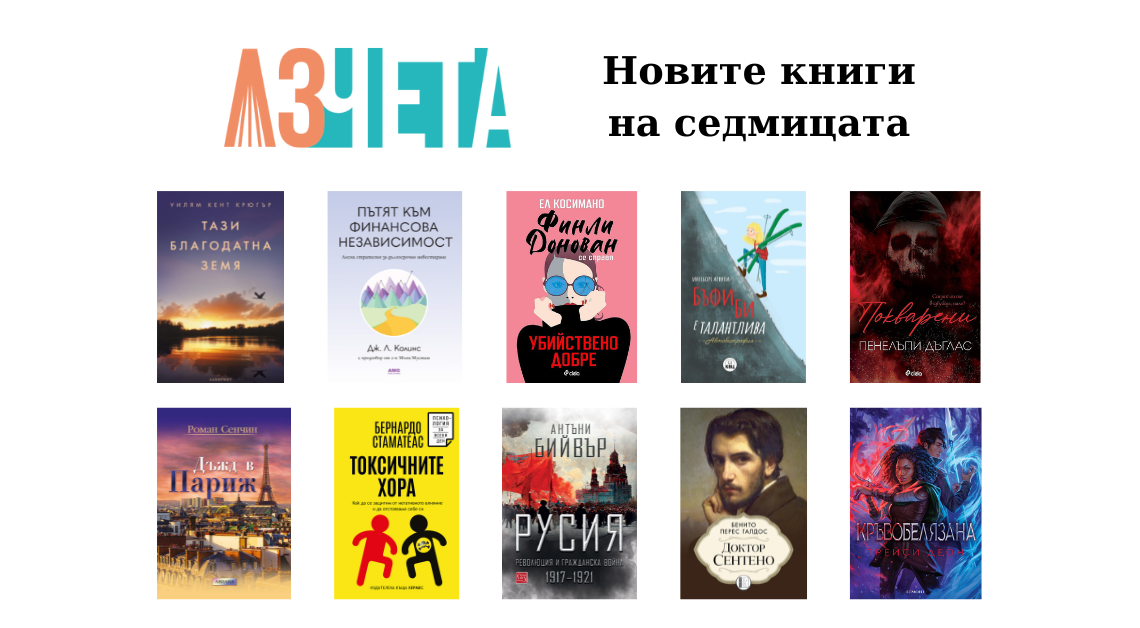 Веднъж в седмицата „Аз чета“ ви представя новите книги на пазара, подбрани от самите издателства. Следете нашия специален формат, но продължавайте да четете и ревютата, които правим за вас. Защото искаме да обичате книгите още повече!