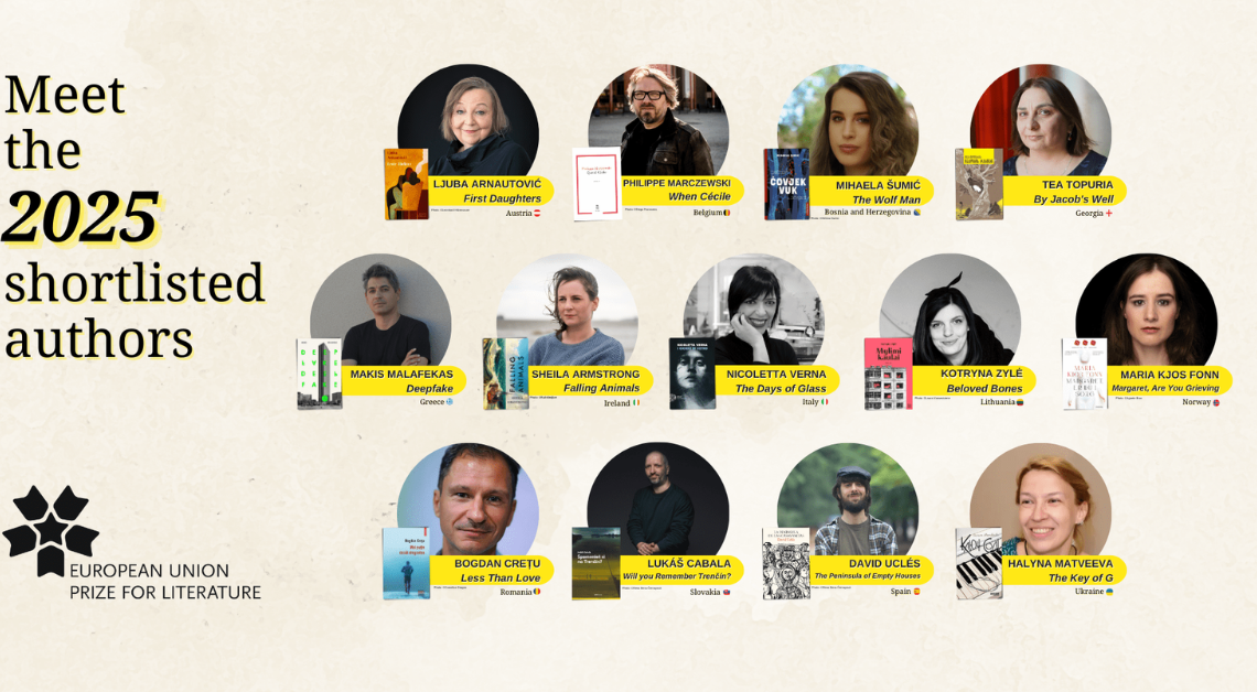 Консорциумът на Наградата на Европейския съюз за литература (EUPL) публикува краткия списък за 2025 г., включващ 13 автори от различни европейски държави. Големият победител ще бъде обявен на 16 май в Прага.