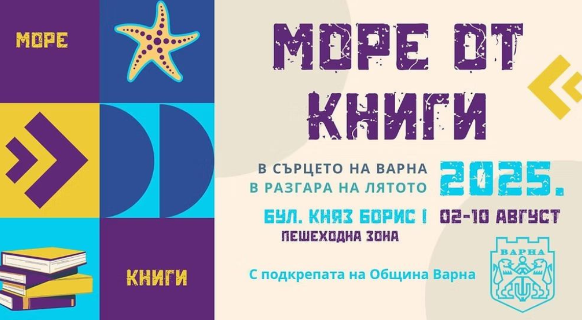 До 10 август Варна е домакин на ново книжно събитие – „Море от книги“ 2025, организирано от издателство Carrot с подкрепата на Община Варна. В продължение на десет дни централната пешеходна зона на бул. „Княз Борис I“ се превръща в литературно пространство с участието на над 30 български издателства и творчески организации.