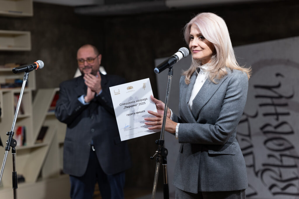 Обявиха тазгодишните носители на престижните литературни награди „Перото“ на Националния дворец на културата. Отличието за цялостен принос получи Владимир Левчев. Статуетката му беше връчена от заместник-министъра на култура Георги Султанов. В категория „Детска литература“ отличеният е Слави Стоев с „Тихата гора” на изд. „Точица“. Той получи наградата от Благородна Здравкова, заместник-кмет по „Култура, образование, спорт и младежки дейности“ на Столична община.